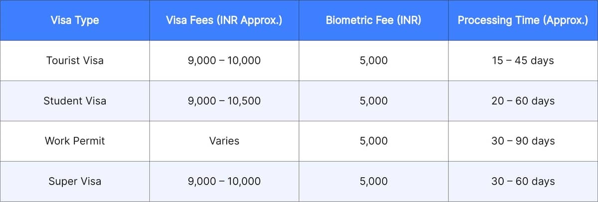 Canada Visa Fees and Processing Time for Indians