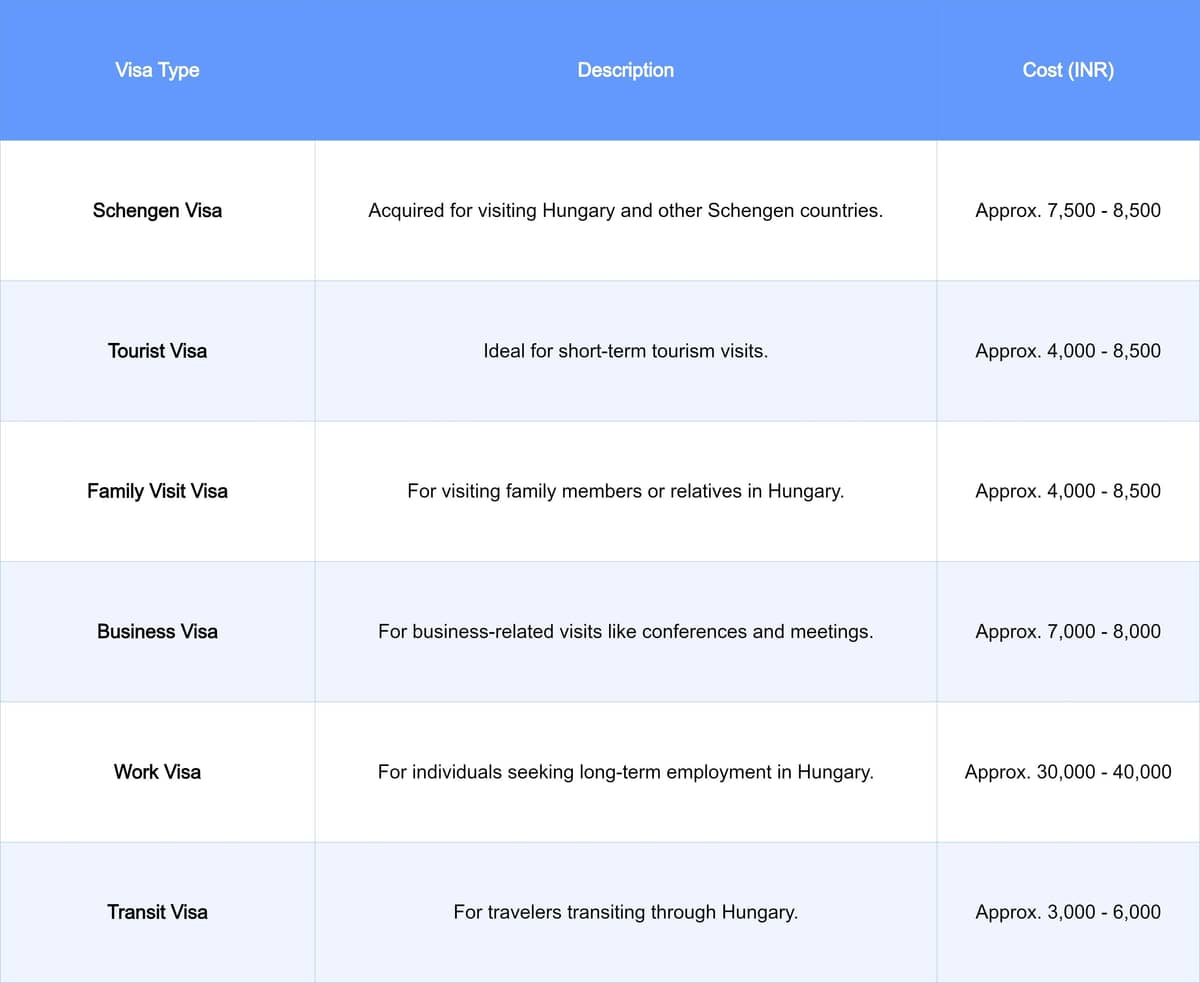 The type of Hungary visa you need depends on your travel purpose and stay duration. Below are the available visa types: