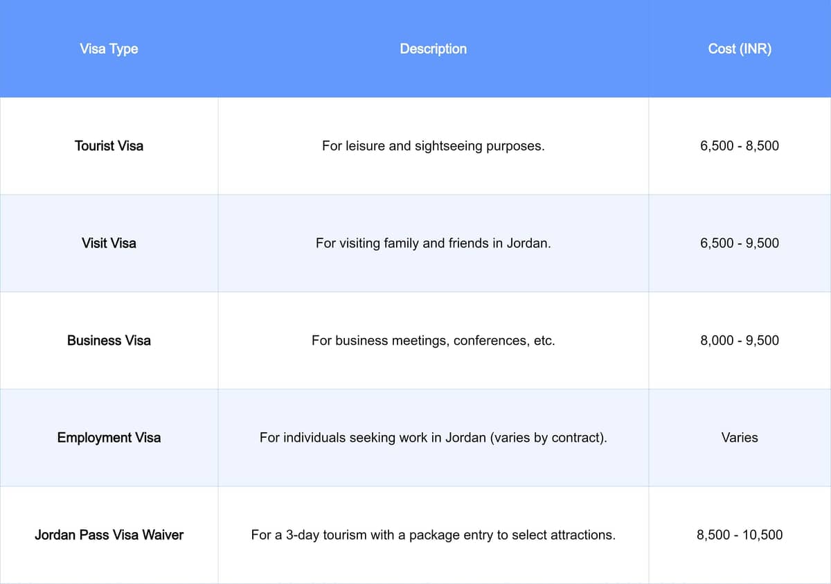 Types of Jordan Visa for Indian Travelers