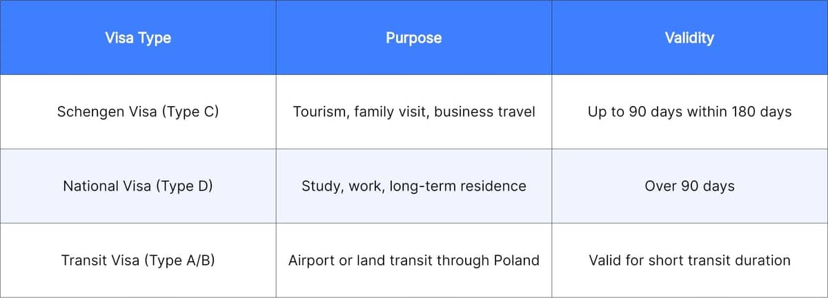 Types of Poland Visas for Indians